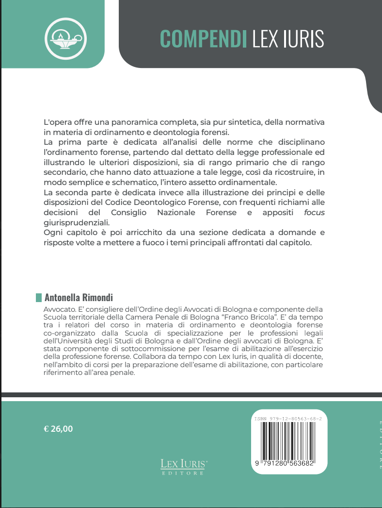 L’opera offre una panoramica completa, sia pur sintetica, della normativa in materia di ordinamento e deontologia forensi.